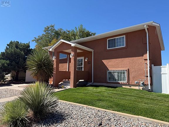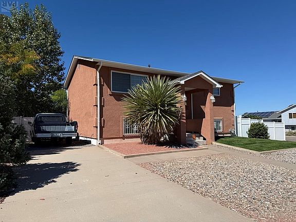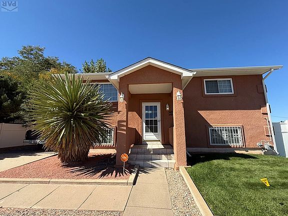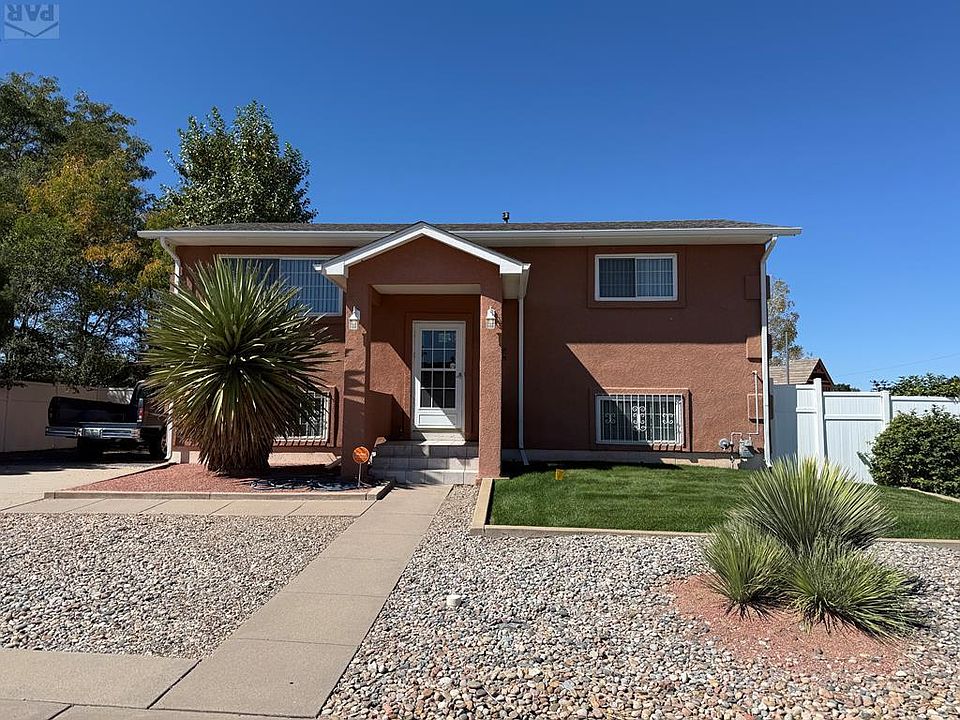 Welcome to this beautifully maintained one-owner stucco home, featuring a tile entry and mature landscaping front and back. Inside, you'll enjoy hardwood floors, granite countertops, vinyl windows, and central A/C. The open main level offers a full tile bath, while the upper bedrooms feature cozy carpet. The lower level includes a family room, walkout basement, three-quarter bath, and a primary suite with wood-burning fireplace and double closet. Outdoors, relax in the spacious yard with covered and uncovered patios, mature trees, a playset, and an oversized 2 car garage that fits a full-size truck. This home is a must see!