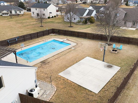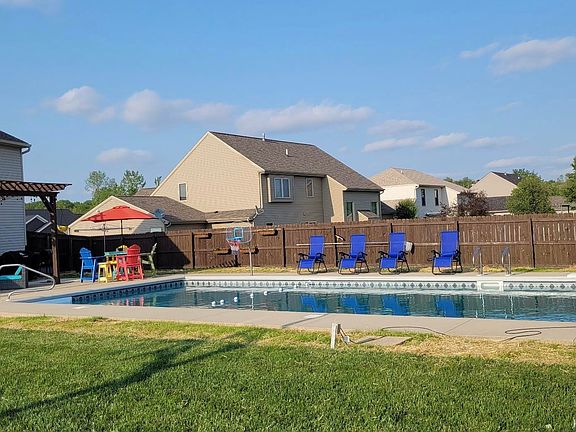**OPEN HOUSE Sunday April 13th 1-3pm** Why spend money on summer entertainment when everything you need is right in your own backyard? This incredible outdoor space is designed for endless fun and relaxation, featuring a 20'x40' heated, Treadway pool complete with a new cover, basketball hoop, and diving board. A half basketball court with an in-ground hoop offers even more recreational options, while the patio, accented by a wood pergola, includes hookups for a hot tub—perfect for unwinding after a long day. Gather around the fire pit for cozy evenings under the stars, all within the privacy of a fully fenced double lot in the desirable Carlisle Crossing neighborhood. Inside, this 4-bedroom, 2.5-bathroom home is just as impressive. New carpet and LVP flooring bring a fresh, modern feel, while updated lighting and a stylish new kitchen backsplash add to the home’s charm. The spacious kitchen boasts bold cabinetry, black stainless steel appliances, and a layout that flows seamlessly into the living and dining areas—ideal for entertaining. A cozy fireplace anchors the additional sitting room, creating a warm and inviting atmosphere. Upstairs, the large and airy primary bedroom sits at the top of the stairs, offering a bright retreat with a walk-in closet and a private en suite bathroom. Two additional bedrooms provide ample storage and flexible space for family or guests. At the end of the hall, a generously sized fourth bedroom could easily function as a home theater, playroom, or additional living area if extra bedroom space isn’t needed. With endless updates put into this home and a stellar pre-listing inspection report, you can move in with confidence knowing this home has been well cared for. Homes like this don’t last long—schedule your showing today before this opportunity is gone!