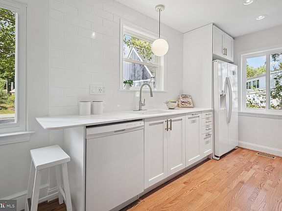Welcome to this charming 4-bedroom, 2-bath Cape Cod, located on one of Silver Spring's most sought-after residential streets in McNeil Addition. With over 1700 finished square feet, this home has been stylishly renovated, offering a perfect blend of modern amenities and classic charm. Step inside and experience the warmth and character that make this property truly special. The newly renovated interior showcases meticulous craftsmanship and attention to detail. Everything is fresh and updated, from the new roof, windows, kitchen, and baths to the modern appliances, high-efficiency heat pump, electrical heavy-up, water heater, and flooring and freshly painted throughout. You can move in with confidence, knowing you have a turnkey home ready for you to enjoy. The main level, reached through an enclosed porch, provides a spacious living area adorned with a wood fireplace and built-ins, setting the tone for cozy gatherings with loved ones. The contemporary open kitchen and dining area create an inviting atmosphere, perfect for entertaining guests or enjoying family meals. Additionally, two large bedrooms, a renovated bath and closet complete the main level. As you make your way upstairs, an airy open landing with under-eaves storage welcomes you. The primary bedroom awaits with ample space and natural light, creating a serene retreat. The state-of-the-art wet room bathroom offers a spa-like experience with a soaking tub and shower, while an additional good-sized bedroom would be a great office. Outside, the home exudes curb appeal with a deep front yard and mature trees, providing a sense of privacy and tranquility. The property also includes an enclosed porch, a perfect spot to relax and unwind allowing you to immerse yourself in nature all year round. With three parking spaces, a shed and a garage, there is plenty of room for your vehicles and storage needs. The property is also zoned for ADUs, presenting exciting opportunities for expansion or additional income potential. Location is paramount, and this home has an impressive 84 walk score, making it a "Walkers Paradise"; Take advantage of being just steps away from the vibrant arts and entertainment scene, excellent shopping, a variety of restaurants, and the weekly seasonal markets of downtown Silver Spring. Additionally, acclaimed elementary and middle schools offering the county's French Immersion Program are steps away, making this home a haven for families. Don't miss the chance to own this turnkey home in Downtown Silver Spring is a thriving community. Whether you are looking for a stylish residence, excellent schools, or a fantastic investment, this property offers it all. Schedule a viewing today and discover the possibilities of making this charming Cape Cod your own!