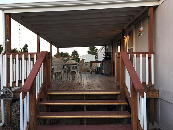 This is a cozy home in a quiet cul-de-sac. Two bedrooms, one full bath, good sized master bedroom with a large closet. Kitchen with eating area, all appliances including washer and dryer. Can be sold partially furnished if interested. There is a large deck for dining and entertaining. The lot is very large and low maintenance with room for RV, boat, and toys and parking. Just minutes to golf course, park, swimming pool, fitness center, boat launch, lake, groceries, and restaurant.