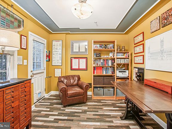 Welcome to 703 Capitol Square Place SW, a beautifully maintained 4-bedroom, 3.5-bathroom townhome with two-car parking, perfectly situated next to DC’s most vibrant waterfront destination, The Wharf. This exceptional residence combines luxury, convenience, and modern city living at its finest. Every element has been thoughtfully elevated—no builder-grade selections here. Breathtaking design details abound throughout, including stately moldings, elegant ceiling accents, striking painted anaglypta wallpaper, upgraded registers, solid oak stair treads, and solid oak hardwood flooring. The Marvin Infinity fiberglass double-hung replacement windows fill all four levels with spectacular natural light. The entry level features an inviting foyer with marble basketweave floor tile, a bedroom or office with wood-look porcelain tile flooring and access to the fenced backyard with a brick herringbone patio. This level also includes a coat closet and entry to the attached garage. Upstairs, the main level showcases a gracious living room with a gas fireplace option (gas line is currently capped) crown and chair rail molding, and a charming bay window with a sitting ledge. The living room flows into the dining area, creating an ideal layout for entertaining. The stunning chef’s kitchen includes high-end stainless-steel appliances such as a JennAir professional-style gas range and a Samsung BESPOKE refrigerator with custom panels and beverage center. Finishes include granite countertops, a center island, a diamond-patterned stone backsplash, and a pantry. The eat-in-kitchen features a bright breakfast nook with access to a large deck with TimberTech/AZEK flooring featuring a built-in gas line—perfect for grilling and outdoor gatherings. This level also includes a powder room. On the third level, there are two spacious bedrooms and two beautifully appointed bathrooms, including a generous primary suite. The primary bedroom offers soaring ceilings, a bay window, a 12 foot-long walk-in closet with an Elfa organizing system, and a modern ceiling fan. The luxurious private bathroom features heated marble flooring, four foot high marble wall tiling, a soaking tub with an inline heater to maintain water temperature at 105°F, and a glass-enclosed two-person steam shower with bench seating, handheld sprayer, jet sprays, rain and wall showerheads, plus a double vanity. The second bedroom includes an attached bathroom with dual access to the hallway. A gas tankless water heater provides unlimited hot water for the entire home. The top floor offers a versatile lounge or fourth bedroom with vaulted ceilings, a dormer, chair rail molding, a storage closet, and an attached full bathroom with a marble vanity and a corner shower. This level also includes a laundry closet for added convenience. This home offers multiple outdoor spaces, including a deck off the kitchen and a private patio below with a seven-foot privacy fence. Parking includes an attached garage and an additional tandem space in the driveway. Just steps from renowned dining, live entertainment, and cultural attractions, this location offers the ultimate DC experience. Enjoy award-winning restaurants, the Anthem concert hall, the Potomac water taxi, the Southwest Fish Market, and the scenic waterfront promenades of The Wharf—a short walk from the front door. Near Arena Stage (six blocks), the National Mall (six blocks) and only three blocks from Metro (orange, blue, silver, green, and yellow lines). Downtown DC, Union Station, and the U.S. Capitol are 1.5 miles away. National Airport is 2.5 miles away. A Whole Foods Market is a short mile-long drive. Improvements: Replaced Roof (2018), Replaced Rain Gutters (2023), Front and Rear Doors Replaced with Fiberglass Doors (2015), Fiberglass replacement windows (2014), and New Garage Door Opener with Integrated Smart Phone Access (2025), replaced both HVAC units (2024). Security system with glass breaking sensors on 2 levels.