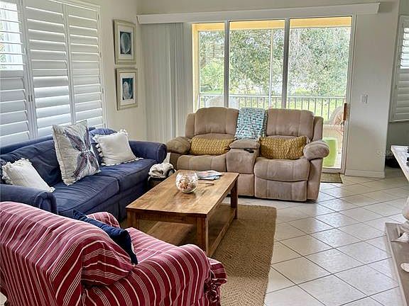 Coastal Chic Seasonal Condo rental. This Condo is at Casa Del Lago(off of Venice Avenue). The perfect escape! 3 bedrooms. Light and airy 2nd floor condo with vaulted ceilings throughout. Minutes to area beaches and downtown Venice. Private primary bedroom with 4 post queen bed. 2nd bedroom with queen bed, and 3rd bedroom with twin beds. Large flat screen TV in the main living area. Tile flooring throughout. Turnkey Furnished and fully equipped kitchen with counter and dining area. 2 full bathrooms. Plenty of closet space. Relax on the Lanai that overlooks a tranquil pond. One car garage and one parking space for a 2nd car. Heated community pool. Washer and dryer inside. Utilities included, including wifi and cable tv. Available now for the 2025-2026 season for 3-6 months.