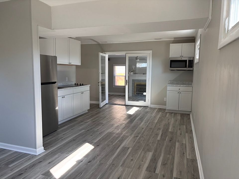 This unit features new LVP, windows, and stainless steel appliances. Spacious bathroom includes in-unit W/D and large all glass shower. Convertible layout includes a walk-in closet and stylish faux fireplace. Attached garage opens directly to the unit and fully fenced, private backyard.