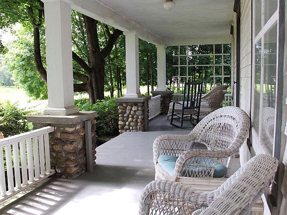 We are on a quiet country lane with views of horses and rolling fields. The property has a sunny garden, majestic old trees, sweeping front porch and is just 2 hours from Manhattan. Located between Rhinebeck and Hudson, NY, and 4 miles from Bard College.