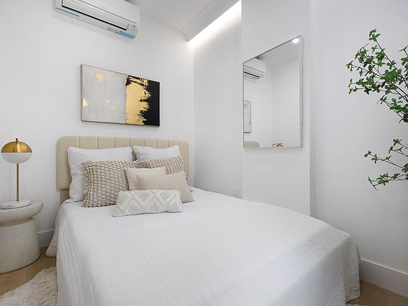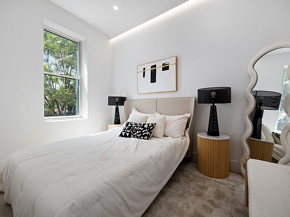 The apartments feature brand-new, top-notch finishes and state-of-the-art appliances. The kitchen has ample cabinet space and an integrated fridge, freezer, and dishwasher, with room for a four-seater dining table or an island. The living room is beautiful, with two windows providing abundant natural light and accommodating your three-seater or sectional sofa. Both bedrooms fit queen beds and have great natural light. All of the apartments have central air and heating. The building has laundry facilities and a stunning, massive courtyard with Wi-Fi access. Storage units are available and are included in the rent!