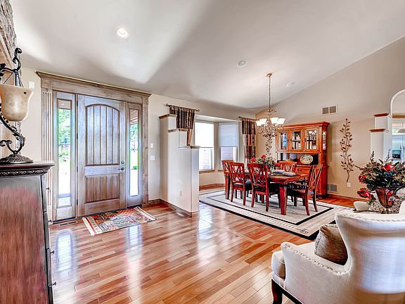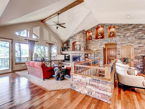 Gorgeous custom ranch walk-out 4 bd/rm, 3.5 bath that backs to Green Space. Near Bear Dance Golf Course. Gourmet kitchen, breakfast nook with bay window with meadow view, gas cooktop, granite island, hardwood teak floors. Opens to great room w/vaulted ceiling, stone fireplace, walkout to covered deck. Dining room has bay window. Alder wood doors and trim. Master bedroom opens to deck, fireplace, luxury spa-like 5-piece masterbath, marble counter tops, w/walkin closet. Study/office with builtin bookshelves. Lower level has 9' and 10' ceilings, family room w/fireplace, stone wet bar with copper sink, refrigerator. Lower level includes three spacious bedrooms with lots of light, two full baths, second great room, and media/rec room. Humidifier, CH/A for year round comfort control. BONUS Flex Space: Over 900 unfin/s/f walkout for your workshop, studio, storage, or you choice, rough-in plumbing. Beautiful, great condition, and move-in ready!
