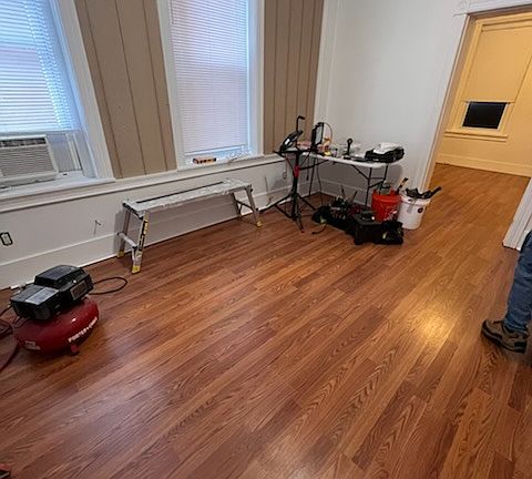 Hardwood flooring, fencing, yard new bathroom, living room, and large. includes water, sewer, trash.