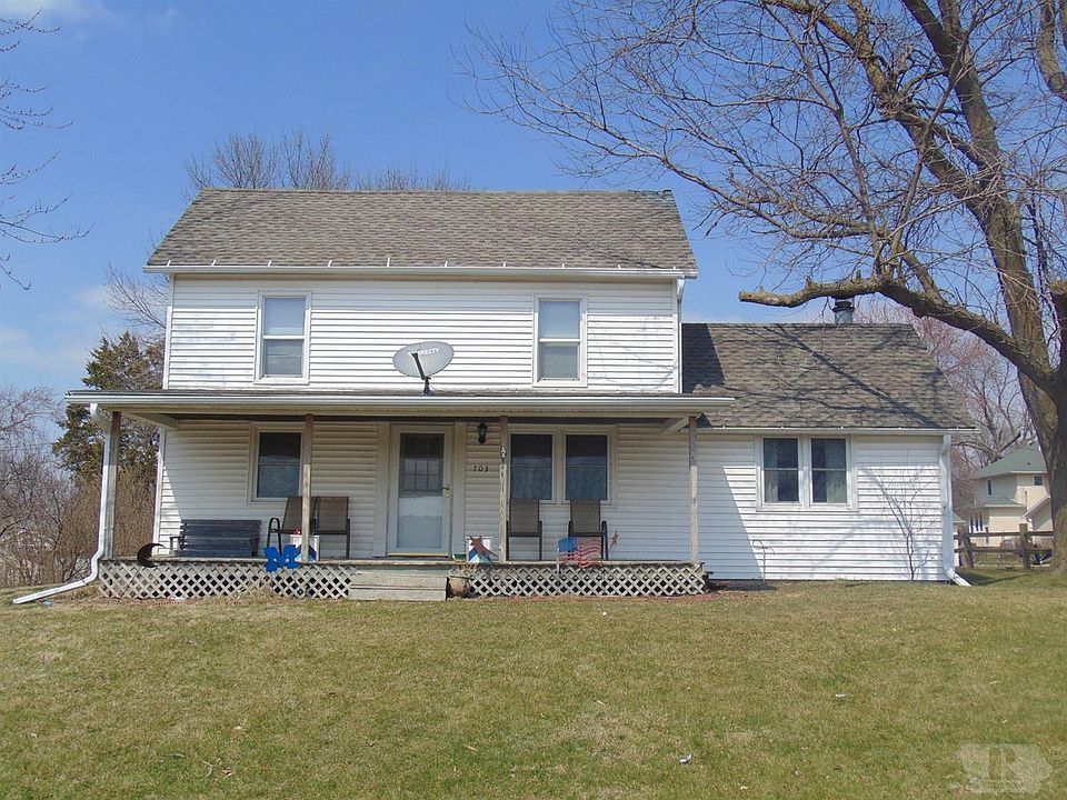 This 2-story home is ready for a new owner to enjoy. Main floor features a large eat-in kitchen with main floor laundry, full bath, dining room and living room with a wood burning fireplace. Upstairs are 3 bedrooms and half bath. Two car detached garage with alley access from 8th St and Liberty. Just a short walk to a public park and ball diamond. School bus stop is just steps from your front door. Seller is offering $3000 towards closing costs OR flooring allowance.