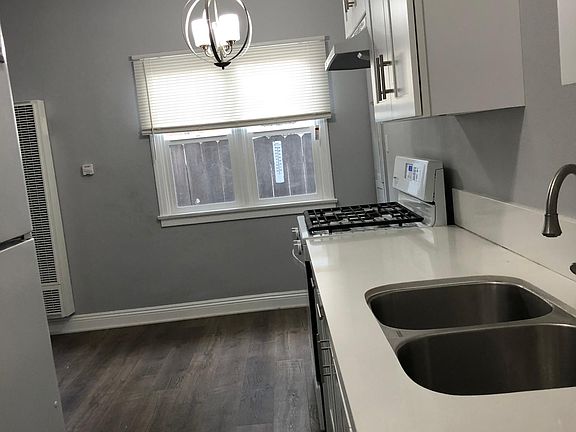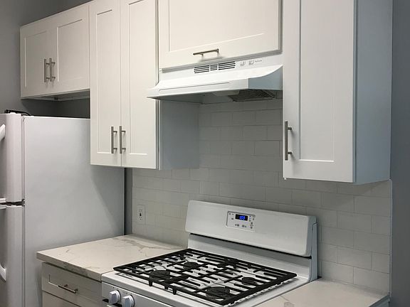 Period detailsBrand new white cabinetsWhite subway tilesGorgeous quartz countertopsRenovated kitchenSparkling bathtub