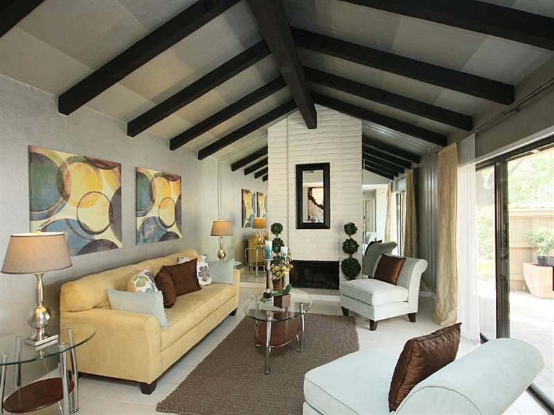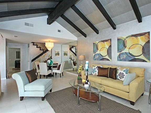 Contemporary East Ranch Condominium with fabulous wrap around patio that allows for two separate outdoor living areas. The full 3 bedroom 2 1/2 baths has a spacious master suite with 3 full closets. The main living area has a open living room / dining room with high vaulted beamed ceilings that look out to the private patio area. The kitchen has a separate dining area which opens up to a family room area. Plus a 2 car attached garage. East Ranch has a pool and tennis courts.