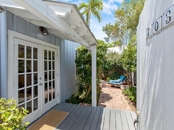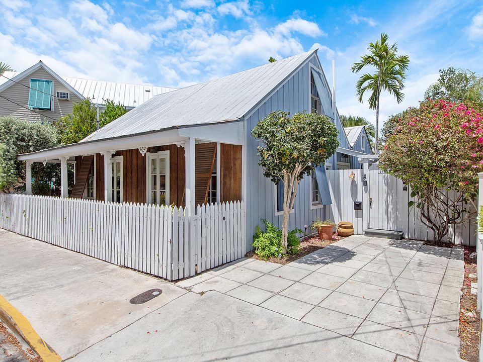 Perched at the highest island elevation referred to as Solares Hill you will find this timeless Old Town gem. A perfect blend of style and charm welcome you to an open concept floor plan with cathedral ceilings and wall of French doors that overlooks a tropical backyard oasis with heated pool, deck and brick patio. Thoughtful finishes that will stand the test of time throughout include built in shelving, painted wood ceilings and floors, dade county pine accents, subway tile and stainless appliances to name a few. 2 bedrooms on the first floor share a full bath and each has access to the charming front porch to watch the world go by. The 2nd floor is private to the primary bedroom with an ensuite bath finished in classic marble, built in storage and a glass walk-in shower. Let's not overlook the coveted off street parking for 1 vehicle and a fully fenced yard wrapped in white picket fencing and low maintenance tropical landscaping. Endless charm abounds and this gem is also available fully furnished and designer decorated for a seamless transition into the perfect island home!