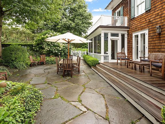 Enjoy the Summer in this magnificently renovated authentic south of the highway Estate with two homes in Water Mill just moments to the famous Flying Point Beach. The main house boasts five bedrooms and five bath and 1 half bath including a primary bedroom with fireplace and private deck, a formal dining room, study/office and den, two sitting rooms, enormous family room/living room, an 8 stadium seated theater/media room, attic playroom, and a country kitchen with Viking and Bosch appliances. The guest house is perfection with two additional bedrooms, a full bath, kitchenette, gym and outdoor shower. Mature specimen trees complete this idyllic picture and provide privacy while the expansive lawn surrounds the pool area for open space to enjoy.