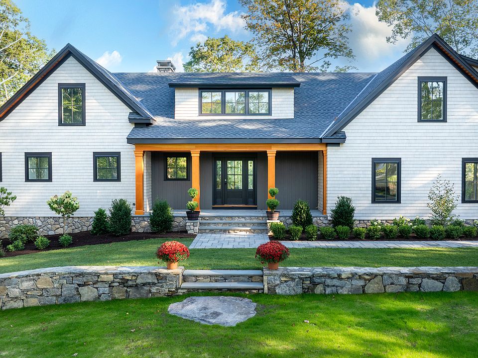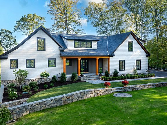 Introducing 703 Fox Hopyard Road, brand new construction with the most gorgeous view. This may just be the very best lot and view in all of Fox Hopyard. Perfectly suited at the end of the road with a sprawling lawn. This Nantucket Style cedar shake home features a dramatic great room with a floor to ceiling stone fireplace, high beamed ceiling with an open spacious loft space above, dining area and is flooded with natural light from the wall of French doors and windows above. The great room is the heart of this home and open to the huge deck which is the ideal spot to enjoy the picturesque setting and beautiful far-reaching views. The well-appointed chef's kitchen with state-of-the-art appliances, a large island, built in pantry wall also has fantastic views from the wall of windows. The spacious primary bedroom suite is located on the main level for ease of one-floor living and opens to the arbor covered deck which is equipped with a hot tub hook up. The primary bath has a huge walk-in closet/dressing room with laundry. The second level features a spacious office/family room/library/flex space that has a high beamed ceiling & opens to the great room below & the spectacular view. There are two nicely sized guest rooms, a large full bathroom & a flex room completing the upper level. The finished walkout basement includes 3 large rooms that are ideal for a Family room/billiard room/movie room/gym/overflow guest space,...in-home office and a beautiful full bath. Stone patio. Known for rolling greens, dotted with waterways and breathtaking New England foliage, the par 71 course designed by Roger Rulewich makes life at Fox Hopyard feel like being on vacation every day! Offering country club living with an award-winning golf course, tennis courts, swimming pool and clubhouse that hosts year-round dining.