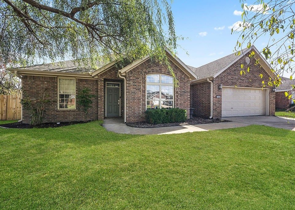 Sensational home in the Prairie Meadows Subdivision! Open concept living space boasts vaulted ceilings and gas-log fireplace flowing seamlessly into delightful eat-in kitchen equipped with custom cabinetry, center island, tiled backsplash and charming dining area. Beautifully updated with fresh neutral color paint, new carpet and new roof being installed too. Practicality with separate laundry room. Wonderful functionality with split bedroom floorplan and spacious bedrooms for the whole family. Unwind from the day and watch the kids play, with fully fenced backyard and covered patio. Prime location that is in the heart of charming Prairie Grove and close to schools, shopping and dining. Withing walking distance to Prairie Grove Aquatic Park and Delford Reiff Park offering pool, ballfields and skate park. Move-in ready and waiting for you!