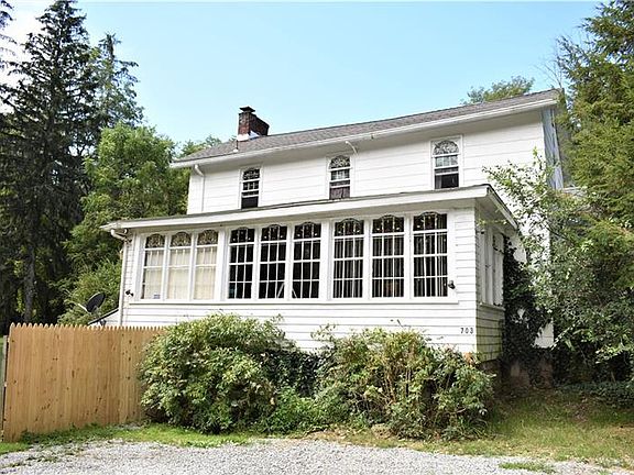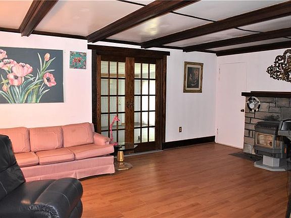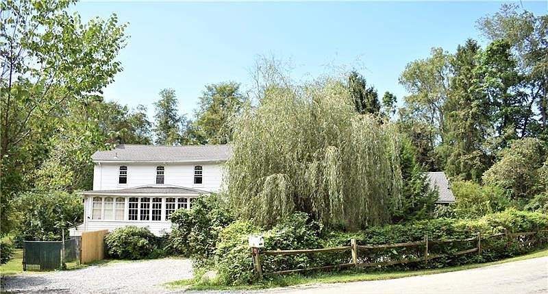 Charming & Spacious Farmhouse on a fabulous 2.8 acres w/2 streams. The home has had many additions over the years. Many of the rooms are versatile and the possibilities are endless. Kitchen includes appliances. First floor laundry. Large sunroom in front of home. Formal Dining Room. Living Room w/Pellet Stove. Large Back Addition "Family Room" (35x16) is plumbed for another bath/kitchen). French doors between LR/FR. Flooring is dark oak hardwood (covered w/vinyl), Pergo. Roof 2013. Furnaces (2) ~2009. The main floor bathroom has a tub and a room next to it with a standup shower. Two spacious bedrooms upstairs with plenty of closet space. The huge two-car garage is attached and is finished (49x19). Basement is great for tools & storage room. Mature trees border the property for natural privacy. The property extends across road to pie-shaped parcel (~326x298x138).