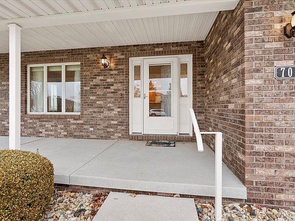 Well-Maintained Ranch-Style Zero-Lot Home in Kingwood Subdivision! Step inside to an open floor plan featuring a spacious, carpeted living room that flows into a large kitchen. The kitchen offers oak cabinets, Formica countertops, an island, a full appliance package (oven/stove, microwave, dishwasher, refrigerator), recessed lighting, and a convenient pantry closet. The dining area sits just off the kitchen with a ceiling fan and sliding door leading to the covered back patio. Throughout the home, you'll find oak trim, 6-panel doors, and casement windows. The primary suite features cozy carpeting, double closets, and an attached full bath with a tub/shower combination. A generous second bedroom-also carpeted-includes its own set of double closets. The main hall bath features a low-step walk-in shower and a linen closet for extra storage. Additional features include a hallway with Berber carpet and handrails, a laundry room with upper cabinets and a new washer and dryer (2025), plus several extra storage closets for utility items and more. Enjoy beautiful sunrises and sunsets from both the covered front porch and the covered back patio. The home sits on a nicely landscaped lot with attractive front and backyard plantings. Rounding out the property is an extra-deep 1-car attached garage with a walking ramp and metal storage shelving. A generator (2012) is also included for peace of mind. This comfortable, easy-living home is ready for its next owner!