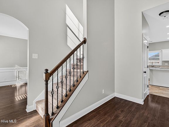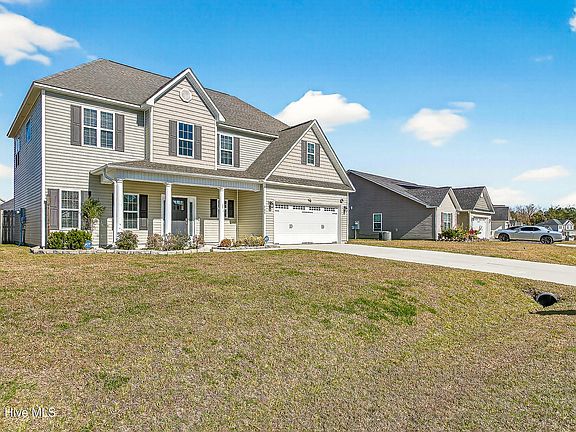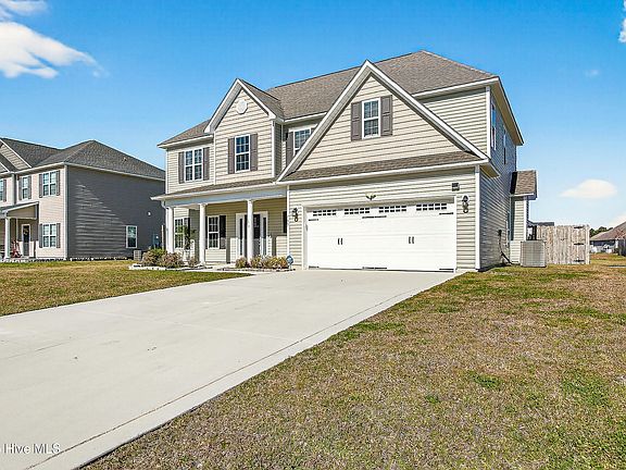 Come explore this pristine 4-bedroom, 2.5-bath residence that offers a beautiful blend of comfort, style, and modern convenience. Located in the highly sought-after Sterling Farms community. From the moment you arrive, the welcoming covered front porch and well-manicured landscaping set the tone for the inviting spaces within. Step inside to discover a bright, open-concept layout enhanced by cathedral ceilings that create an expansive, airy feel. The home is meticulously maintained, showcasing a modern and exceptionally clean interior filled with natural light throughout. The well-appointed kitchen features a spacious island and seamlessly flows into the dining and living areas, creating a warm and welcoming atmosphere—perfect for both everyday living and entertaining. Upstairs, you'll find generously sized bedrooms, including a serene primary suite complete with a walk-in closet and private ensuite bath. Step outside to enjoy the covered back patio overlooking a thoughtfully designed backyard. The rear yard features gravel already in place, offering an excellent opportunity to add a fire pit or create a cozy outdoor seating area. There is also ample room for gardening, making this outdoor space both versatile and inviting. Ideally situated in close proximity to Camp Lejeune, nearby schools, shopping, and dining—and just a short drive to the beautiful Crystal Coast beaches—this home offers unmatched convenience and access to so much more. Don't miss the opportunity to own this exceptional property in one of Jacksonville's favorite neighborhoods!