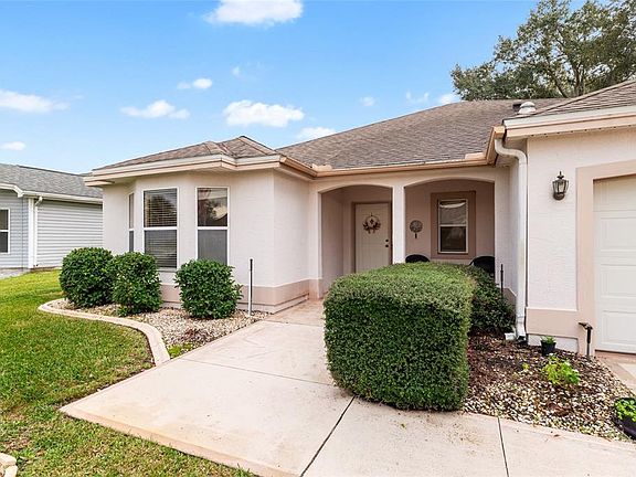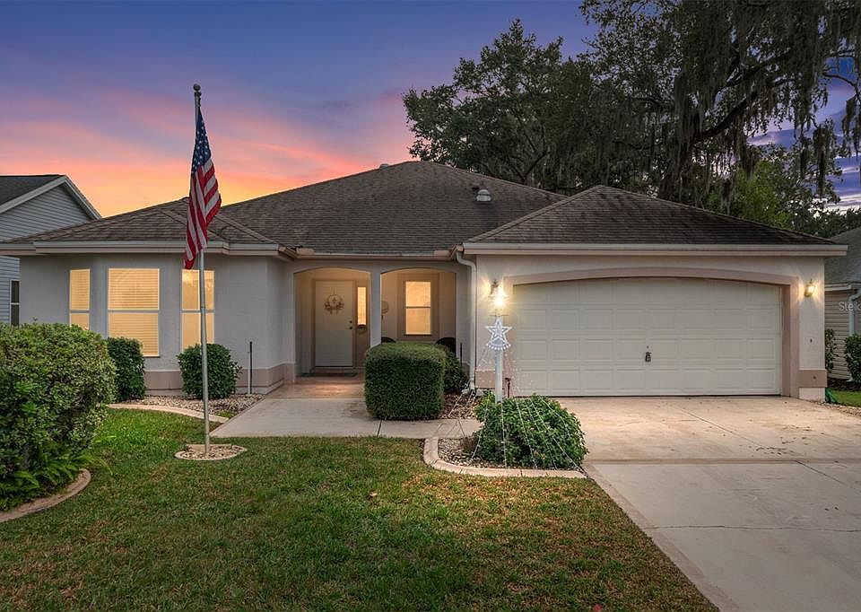 NO BOND! BLOCK & STUCCO SIERRA DESIGNER MODEL in the Highly Desired Village of De La Vista! This 3-bedroom, 2-bathroom home offers a SPLIT FLOOR PLAN, impressive 10' HIGH CEILINGS, and an unbeatable PRIME LOCATION just minutes from Lake Sumter Landing and Spanish Springs Town Square. You’ll love being within walking distance to Tierra Del Sol Country Club, the theater, recreation center, restaurant, and both De La Vista and Mira Mesa Executive Golf Courses. Quick access to Hwy 441/27 and CR 466 provides endless options for shopping, dining, banking, and medical services. Inside, you'll find neutral-toned TILE flooring? in the Foyer with/ an ENTRY CLOSET, and a spacious OPEN-CONCEPT living and dining area with/ HARDWOOD flooring. The sliding glass doors brighten the home with natural light and lead to the AMAZING LANAI, ideal for entertaining or unwinding. The SPACIOUS KITCHEN offers abundant counter space and a comfortable eat-in area, making meal prep and casual dining a breeze. The primary bedroom suite features beautiful WOOD flooring and TWO CUSTOMIZED WALK-IN CLOSETS, offering exceptional storage and organization. The SPLIT FLOOR PLAN includes two additional bedrooms, and the guest bathroom includes a convenient shower/tub combo, perfect for guests or everyday use. Ensuring excellent PRIVACY for guests or creating the perfect setup for a quiet home office. Other features include: NEW carpeting, FRESHLY painted throughout, inside laundry, and ROOF (2019).