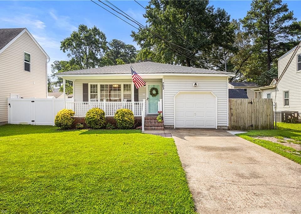Welcome to this charming 3-bedroom, 2-bath ranch in Chesapeake. Freshly updated with light, airy paint tones and refreshed kitchen cabinets, this home feels warm and inviting from the moment you step inside. The spacious living room flows seamlessly to a beautiful back deck, ready for entertaining or relaxing. A fenced backyard adds privacy and space to enjoy the outdoors, while the covered front porch offers another spot to unwind. Conveniently located near shopping, dining, and interstates, this home is an excellent opportunity for anyone looking for comfort and convenience.
