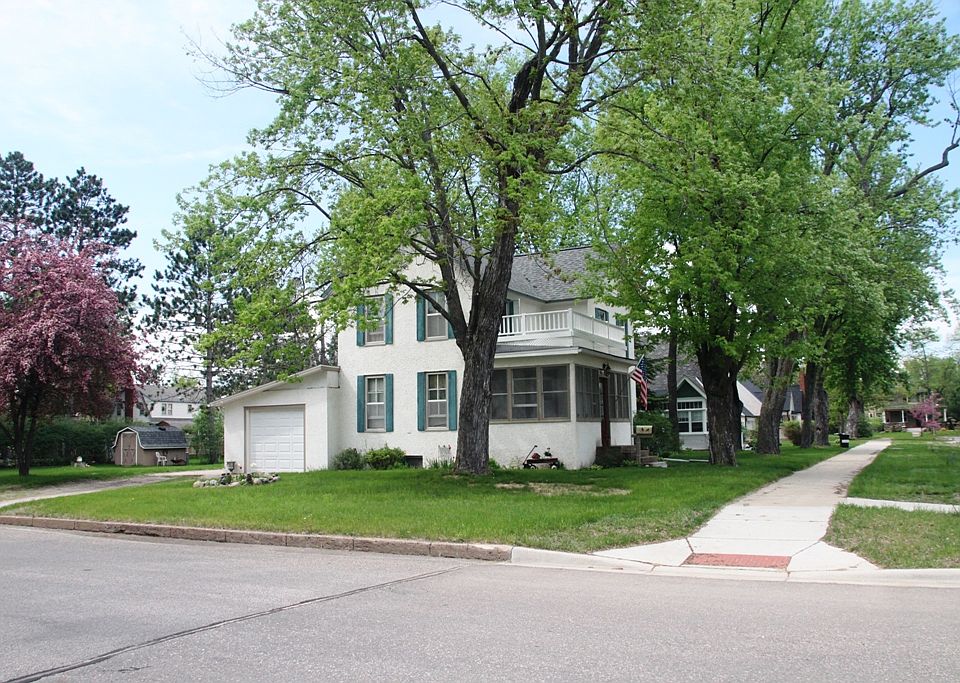 This is a charming turn-of-the century house on a large corner lot in quiet North Brainerd. It is close to Gregory Park, which has year round activities. A comfortable three season porch greets you as you enter the front door. A small entryway takes you into the the large living room, which has a picture window looking back into the front porch. the living room opens up into the formal dining room. The moderate size kitchen includes a cozy breakfast nook, and lots of beautiful oak cupboards with a built-in desk. From the dining room, a beautiful oak banister leads you up the stairway to the second floor. The second floor includes two large bedrooms, a small bedroom and the bathroom. The Master bedroom has a large clothes closet and an additional storage closet. The other large bedroom has two nice size closets with overhead storage cabinets. The small room will hold a twin bed and small dresser. The bathroom includes a large medicine cabinet, vanity sink, and a standard size bath tub with shower. A large three season porch at the back of the house provides space for entertaining or family activities, with a nice view of the backyard. On either side of the porch, there are patios that open up to the backyard offering a great space for games, a bonfire or just relaxing. You will enjoy the mature trees, flowering trees and bushes, flower gardens and a small vegetable garden. While the original house was built around 1900, it has all the modern conveniences and a few extras. A Home Automation and Security system provides peace of mind, energy savings, and remote control of security, lights and heating/cooling. A central vacuum provides convenient cleaning for the whole house. Telephone, network and TV are cabled to all rooms except one bedroom and the bathroom. The plumbing and electric in the house has been recently renovated. The furnace and water heater are high-efficiency gas units. There is a clothes chute from 2nd floor that takes your clothes to the basement laundry. The small, single car attached garage is great for a workshop, motor cycle, ATV, or mid-size car. There is a shed in the back yard that is great for the mower, yard tools and sporting equipment.