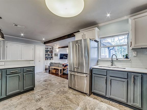 Cross over the spring fed creek into the private beautiful lot full of mature trees & limestone hill to view this remodeled home just minutes from Bishop Arts & Trinity Groves! Great open flexible floor plan! Cozy family room with walls of built in book shelving.The cook will love this kitchen with marble c-tops, stainless appliances, gas cook top, breakfast bar, plenty of cabinetry & brushed travertine tile floors. Wood flooring in all living areas. Owners retreat features remodeled bath w- dual sinks, walk in shower & woods floors. Exterior door leads to private patio in backyard. Third bedroom could make second living or great office. Step into the beautiful private treed backyard & enjoy nature in the city! 2022-03-15