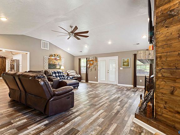 Welcome to the most unique spot in Etowah County! Sitting on 3.5 acres where country living meets convenience with only a 10 minute drive to town! This beautiful home was completely renovated and remodeled in 2022 with a brand new HVAC, roof, windows, vinyl siding, sheet rock and more. Outside you'll find a newly built guest house complete with a full bathroom, full kitchen, space for stackable washer and dryer, and two lofts for queen/full size beds. The outdoor space was made for entertaining with a fully stocked pond, fisherman's cabin with toilet and sink, pavilion with power/working lights, a beautiful deck and a pool! Buyer/buyers agent to verify all pertinent info.