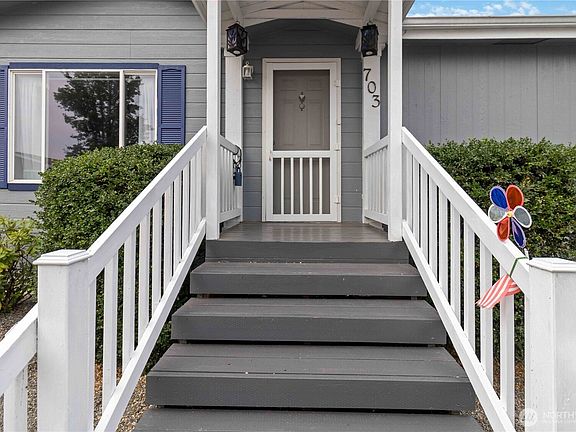 Not to be missed ~ this home is move-in ready! This three+ bedroom home is beautiful ~ it has a a very functional layout; a large primary bedroom with en suite bath at one end of the house and the other two bedrooms plus den/4th bedroom on the opposing end. Open concept with newer roof & laminate flooring, newer exterior/interior paint, new water heater, rebuilt furnace, new plumbing and insulation under the house, new tub and shower in bathrooms! Has been well maintained and is ready for new owners! Great placement in park on corner lot, large yard area and workshop too! Park offers clubhouse, playground, and rec area plus RV parking. No age restriction and small pets welcome.