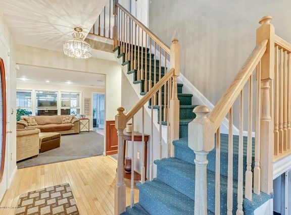 Keyport Colonial with water views. Cozy wrap around porch over looking beautifully landscaped lawn. 30 yr. warranty roof installed within the last year. New retaining wall extends parking in driveway. Sun Setter awning over Treks Deck and hot tub in rear yard. Pavered lower level rear yard with fire pit for entertaining. Custom kitchen with granite counters, Viking fridge, convection oven, microwave, and dishwasher all still under 2 year warranty. New heat and A/C. Second floor laundry. Hardwood floors and gas fireplace in living room. All-Season room with glass cathedral ceilings, heat and A/C over looking marina.
