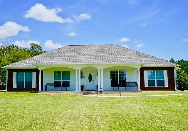 Spectacular home w/over 2300 sq.ft. on 3 picturesque acres. 3bed/2bath plus office or 4th Bd. Sun-kissed dining room, inviting family room offering gorgeous 12 ft ceilings w/dual sided fire place adjoining sun room. Lovely architectural details throughout. Spacious Master Suite with 2 walk in closets, separate vanities, walk in shower & large jetted tub. This home also features a mother-in-law home/apartment or man-cave w/an additional 576 sqft 1 bd/1ba, living room and kitchenette. Plus workshop on slab. A/C unit replaced (inside & out), gutters added & new hot water heater in 2018.