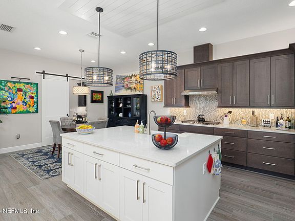 CDD PAID OFF! OVER $100,000 IN UPGRADES! Luxury townhome in gated resort-lifestyle Atlantica Isles at Beachwalk! Meticulous one-owner care-Priced to move at $799,000! This stunning 4-bed, 3-bath residence offers over 3,000 sq ft of elegant living with porcelain tile floors, designer lighting, and high-end finishes throughout. The chef's dream kitchen boasts an oversized quartz island, farmhouse sink & premium cabinetry. 1st floor bedroom is currently used as an office, ideal for remote work or guests. Glass stacking doors open to a screened lanai and fenced backyard, perfect for Florida living. The serene primary suite features dual walk-in closets, a spa-style bath w/electric fireplace, and a private balcony perfect for morning coffee or peaceful outdoor lounging. Additional upgrades include a whole-home dehumidifier, whole-home surge protector & smart alarm system. Enjoy Beachwalk's crystal lagoon, clubhouse, fitness center, tennis courts, social events. Top-rated St Johns schools