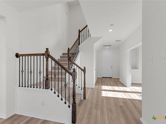 This gorgeous, two-story home showcases an open floor plan with stylish luxury vinyl plank flooring and a spacious great room for entertaining. A den provides space for a home office or private retreat. The kitchen boasts Shaker-style upper cabinets, sleek tile backsplash and Silestone® countertops in Blanco Maple. Unwind in the first-floor primary bedroom, which features plush carpeting, a walk-in closet and connecting bath that offers a dual-sink vanity and tub/shower combination with tile backsplash. Upstairs, a versatile game room awaits. Additional highlights include a smart thermostat, timeless Sherwin-Williams® interior paint and modern Moen® fixtures throughout.