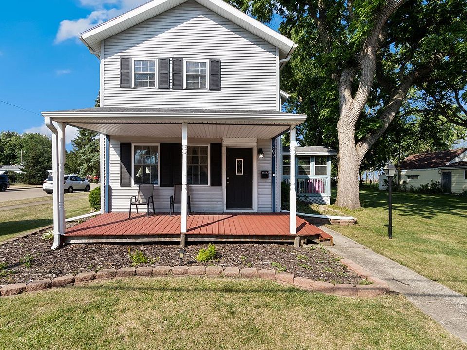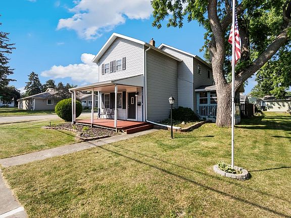 Step into modern living with this beautifully updated 2-story home situated on a desirable corner lot. The property features a contemporary kitchen with stainless steel appliances, and updated bathrooms for a sleek, modern feel. Enjoy the convenience of main floor laundry and a nice patio perfect for outdoor gatherings and relaxation. The 2-car detached garage is equipped with electric service and can be heated, offering additional functionality and comfort. Recent updates include a new A/C system in 2017, an upstairs bathroom remodel in 2020, and a refreshed staircase and new flooring on the upper level in 2023. This home combines modern amenities with charming details, making it move-in ready and perfect for anyone seeking a stylish and comfortable living space.