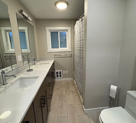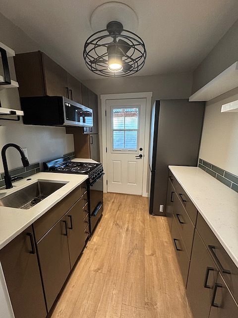 Newly remodeled 1 bedroom apartment. Featuring LVP flooring and quartz countertops, this light and bright apartment is ultra clean and ready to rent on 12/1/25. The kitchen has ample storage, quartz counters, apartment sized stove and refrigerator with built in microwave. The large bathroom has dual vanities and full bathtub over shower combo. Shared laundry in building. Enclosed back deck and shared yard.