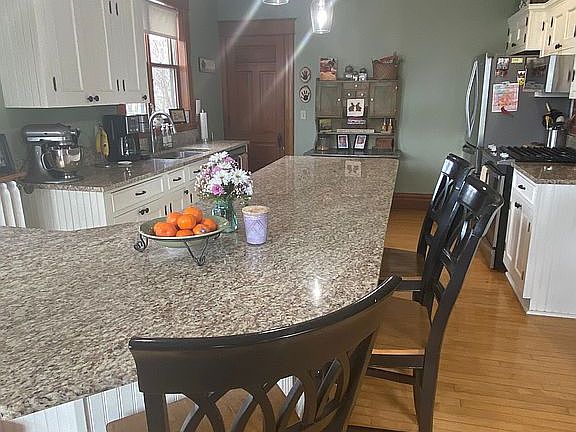 BACK ON THE MARKET! The house we were trying to purchase had failed inspections, so our home is once again available. Beautiful Victorian home for sale on 703 S. State Street, Geneseo, IL. This house was built in 1902 and is a mix of original charm and modern updates that every family wants. This house has 3 large bedrooms, 2 full bathrooms with finished basement and walk-up attic. Also, a brand new laundry room is upstairs close to bedrooms and bath. The house has an updated kitchen where everyone gathers around the large center island, dining room, office, living room, and beautiful entry that leads to upstairs. Both bathrooms are updated. Original hardwood floors throughout the house. The house includes 3 sets of original pocket doors and beautiful woodwork with newer windows that tilt in for easy cleaning, a gas boiler for hot water heat, central AC. New water softener. The front porch floor replaced and the entire house was professionally painted in the last couple of years. The basement is finished with the exception of the mechanical room. If you like the interior, you will love the exterior. The backyard is pristine with new vinyl fencing that gives privacy to the large new patio and stamped concrete fire pit in the back. Edging and landscaping completed around the house to give a nice finished look. The driveway is paved from the street back to the original carriage house. This carriage house is every hobbyist's dream with parking for four vehicles, and plenty of storage on the 2nd floor of the carriage house. The first floor is finished, insulated with heater, air, and water, with floor drains. Brand new garage doors with openers in 2020. Newer kitchen appliances stay. Storage is not an issue in this house. This house is move-in ready! NO CONTINGENCIES No calls after 9:00 p.m., please