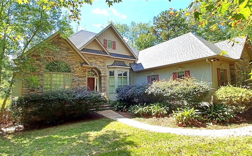 Just off the foyer, the dining room flows seamlessly into the living space, creating an open and inviting layout. The primary bedroom suite is generously sized with a tray ceiling and space for a king-sized bed. The en-suite bathroom offers dual vanities, a jetted tub, and a separate shower, with an adjoining walk-in closet featuring durable metal shelving. Two additional bedrooms share a convenient Jack-and-Jill bathroom, while a fourth room near the foyer serves perfectly as a sitting area, playroom, or office. Downstairs, the finished basement features a large den with a beautiful fireplace, perfect for cozy gatherings. You’ll also find two additional bedrooms, plus a flexible space ideal for a craft room, hobby space, or extra storage. The den has exterior access and opens to a covered patio beneath the upper deck—an ideal spot to relax and enjoy the outdoors. This lakeside home is a rare find—schedule your private tour today!