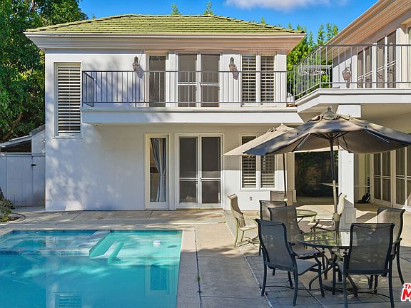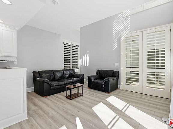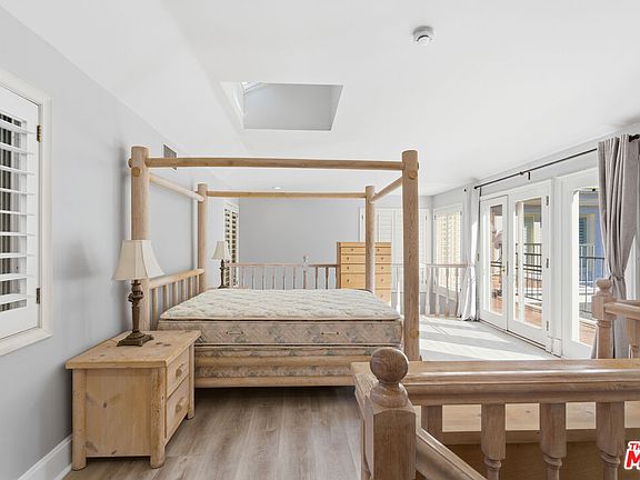 Exceptional two-story Beverly Hills Flats guest house offering bright, inviting living spaces and excellent privacy. The main level features an open living area with abundant natural light, recessed lighting, and wood-style flooring, along with a convenient kitchenette and full bathroom. The upper level includes a spacious bedroom with vaulted ceilings, a skylight, and French doors leading to a private balcony overlooking mature landscaping. Outdoor amenities include multiple seating areas and a well-maintained patio. Designed for comfort and seamless indoor-outdoor living, this residence is ideal for relaxation, extended stays, or guest accommodations.
