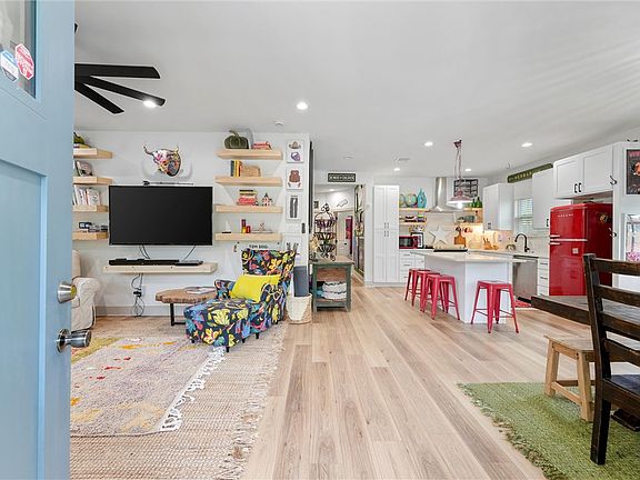 Welcome to 703 W Fifth St located in the heart of Brenham, Texas! This charming 3-bedroom, 2-bathroom home offers 1350sqft of modern living space with functionality kept in mind. The open concept offers a seamless transition from living room, dining room, and kitchen. The kitchen features stainless steel appliances, and an island with sitting space. With custom shelving, and ample cabinetry throughout, there is no shortage of storage space! The home is fit with double-pane windows, smart tech water leak detection system, solar attic fan, double sealed A/C ducting, and more! Enjoy hosting with the covered deck off the front porch, or retreat into the backyard. The backyard features a covered pergola, fire pit, and storage shed. The exterior also offers additional railing, and plenty of space for gardening endeavors. Conveniently located, this home is only 1 block from Blinn College, and just a few blocks from shopping and eating. Don't miss the opportunity to make this home yours!