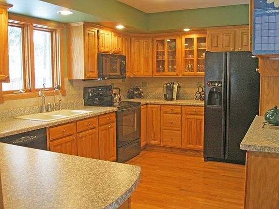 CAN'T WAIT FOR SPRING... to see the bulbs and perennials pop up in the huge park-like backyard of this 3BR, 1.5BA ranch. Great updates including newer bath w/granite counter & double sinks, kitchen w/new ash cabinets, tile backsplash and all appls (incl washer/dryer on main floor). Tile & hardwood flooring, sunken LR w/new gas FP and LL w/egress window & gas FP is ready to finish.