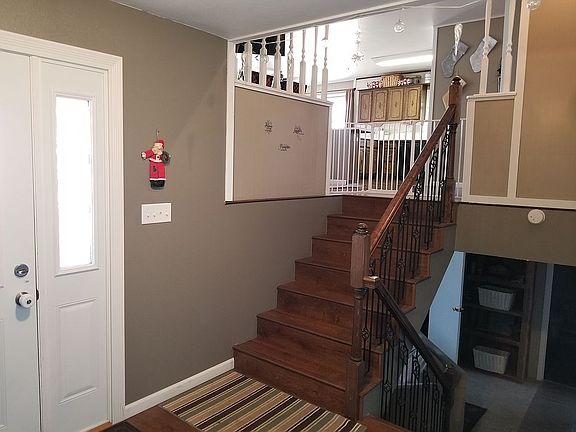 Relisting home for sale. Single family home with attached two car garage. Close to schools. Large back yard with garden shed. Deck off of dining room area patio doors. Open concept. Two large living room areas, one on each level. Lower level living area with fireplace mantel. Four bedrooms, two on lower level and two on upper level. Two bathrooms, one of each level. Large entry way. Utility room. Many storage closets throughout the home. Contact: call or text 715-383-8949