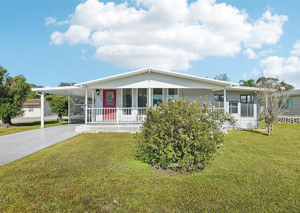 One or more photo(s) has been virtually staged. Welcome to Kove Estates, a vibrant and gated 55+ Co-Op golf community in Osteen, Florida, where resort-style living comes standard. Ownership here includes a community share, meaning no lot rent—just a low monthly cooperative fee of $298, which covers water, sewer, and trash. Residents enjoy an active, social lifestyle with amenities such as free 9-hole golf, two swimming pools (including one heated), tennis and pickleball courts, a clubhouse, library, frequent community events, and secure gated entry. Ideally situated off SR-415, The Kove keeps you minutes from Sanford, Deltona, and New Smyrna Beach, with convenient access to shopping, dining, medical facilities, and major attractions like Daytona International Speedway, the Kennedy Space Center, and Orlando’s world-famous theme parks. This well-kept 2-bedroom, 2-bath home offers a spacious and functional layout, featuring a large family room, a kitchen with a stovetop and regular conventional oven , and an open dining area. You’ll also appreciate the 23.9' x 11.4' Florida room, perfect as a bonus room, hobby area, or second living space. The primary suite includes a roomy ensuite with a vanity and great storage, and both bedrooms feature walk-in closets for added convenience. Notable updates include a brand-new dishwasher, updated flooring, a newer roof (2022), upgraded windows, a newer HVAC system, and an updated electrical panel (2018). The recently resurfaced driveway is still under warranty. A dedicated laundry room with extra storage, a spacious carport with newly constructed attached shed/storage/workshop room at the end of the carport, a welcoming front patio, and a separate backyard shed/workshop add even more value. Sitting on a desirable corner lot, this home checks the boxes for comfort, practicality, and low-maintenance living. This cash-only opportunity is ideal for anyone seeking a peaceful, convenient, and affordable Florida lifestyle. Retire with confidence—this home is a must-see.