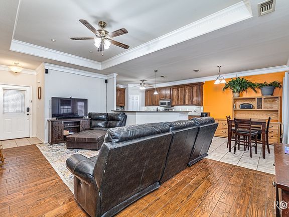 Charming 3 bed, 2 bath home with 1,589 sq ft located in a quiet cul-de-sac in the Lower Bluffs —outside the flood zone! This home features wood looking tile floors throughout, a spacious open-concept layout, and a cozy gas fireplace as the living room focal point. The kitchen offers granite countertops, abundant cabinetry, and a breakfast bar that flows into the dining and living areas—ideal for entertaining. The split-bedroom layout includes a private primary suite with tray ceilings, a soaking tub, walk-in shower, double vanities, and two large closets. Enjoy a generously sized backyard with privacy fencing, mature landscaping, and a covered patio for relaxing or entertaining. Additional features include crown molding, indoor laundry, a two-car garage, and convenient access to schools, shopping, and Loop 306. This well-maintained home offers the perfect blend of comfort, style, and location. Schedule your private showing today!