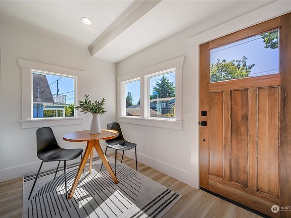 Old world charm combined with modern updates, conveniently located between the heart of Ballard and Greenwood. This incredibly remodeled 2 bedroom home is ready for you to move in and enjoy life. With plenty of natural light, you will enjoy the west facing front porch, the designated off street parking, new roof, natural gas fireplace, and mini-splits for heat and AC. Both bedrooms with large closets and en suite bathrooms. Downstairs boasts a large open area, great for office space, family room, media room or storage for all of your gear. Conveniently located near several parks and easy DT access.