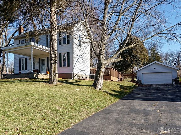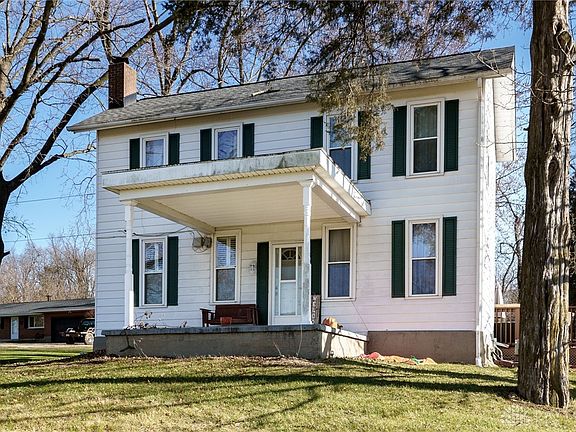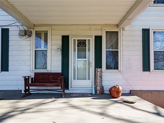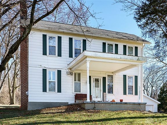 Freshly painted throughout, this country charmer has a spacious living room with high ceilings, and a gorgeous eat-in kitchen that overlooks the beautiful back yard and huge deck; that is just perfect for entertaining. Off of the living room is a spare room/office, perfect for working from home, or making a third bedroom. Upstairs you will find two lovely bedrooms; complete with a farmhouse sliding door revealing the huge walk-in closet. Complete with an unfinished basement and large driveway with ample parking space, this home also offers a 2 car detached garage, adding plenty of room for storage. This historic farmhouse is looking for the perfect owners who appreciate it's character and charm and are willing to put it some sweat equity to bring it back to it's glory.