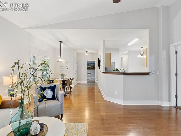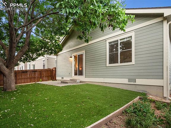 Welcome to this delightful 3-bedroom, 2-bath ranch-style home nestled in the sought-after Cascades at Springs Ranch community. Boasting a bright, open-concept floorplan, this home is filled with natural light and features beautiful wood flooring throughout. The cozy living room, complete with a fireplace, creates a perfect setting for relaxing evenings or entertaining guests. The well-appointed kitchen offers generous cabinet space and comes fully equipped with appliances, making daily meal prep simple and efficient. Enjoy year-round comfort with central air conditioning, and benefit from energy savings thanks to paid-off solar panels. A brand-new roof was just installed in June 2025, offering added peace of mind. The primary bedroom includes its own private en-suite bathroom, while the finished basement offers a versatile space ideal for a media room, recreation area, or guest retreat, complete with a kitchenette/wet bar—plus the potential to add a bathroom. Outside, the low-maintenance backyard features professionally installed turf, mature trees, and a fenced-in area, perfect for outdoor enjoyment. Ideally located just steps from Remington Elementary and expansive parks and green spaces, this home also provides easy access to the Powers Corridor's shopping and dining, as well as a short commute to Peterson AFB. Don’t miss this incredible opportunity to make this charming property your new home!