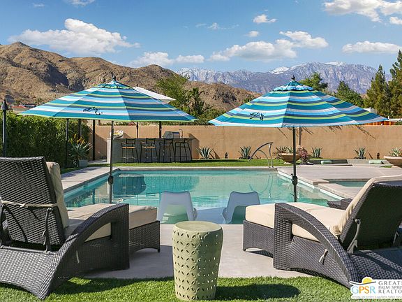 Desert Paradise with Luxury & Views! Welcome to your private oasis in the heart of Rancho Mirage! This fully remodeled 2-bedroom, 2-bath retreat sits on an expansive 18,000+ sq. ft. finished lot, offering an unparalleled blend of luxury, tranquility, and breathtaking mountain views. Step into an entertainer's dream with a south-facing resort-style pool and spa, complemented by a sunken fire pit perfect for unforgettable desert evenings. The lush lawn, mature landscaping, and bocce ball court create an idyllic outdoor escape, while the lava rock outdoor shower built for two delivers a spa-like experience under the open sky. Inside, the home is offered turnkey furnished (excluding artwork), showcasing a sophisticated yet relaxed aesthetic with high-end finishes throughout and an owned solar system. Nestled in a hidden enclave of estate homes, this property offers rare privacy and exclusivity yet is just minutes from world-class dining, golf, and shopping. A rare gem in Rancho Mirage, schedule your private showing today!