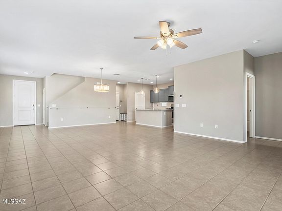Located in La Estancia, this home offers access to a sparkling pool, shaded playgrounds, and scenic walking paths, all minutes from shopping, dining, and I-10. Enjoy mountain views and privacy with no neighbors behind, plus a paid solar system for efficiency. The open great room flows into a modern kitchen with gray cabinets, granite counters, and stainless Whirlpool appliances. A first-floor guest suite adds flexibility, while upstairs features a loft and primary suite with dual sinks and huge walk-in closet. The backyard retreat includes turf, irrigation, brick accents, and fruit trees. EV charging in garage.