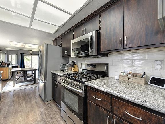 Beautiful 3 bedroom 1 bath home. This home features laminate flooring, newer paint, an updated kitchen w/granite counters, built in microwave and a gas range. The living room offers a fireplace and opens to the dining area & bonus space. The backyard offers a raised garden area, patio & courtyard + a workshop/exercise space. The home also features the following Nest products which include doorbell, Yale smart locks, thermostat, smoke detectors, & security system.