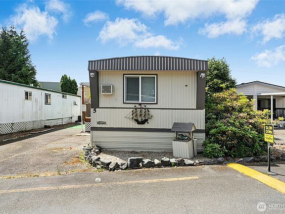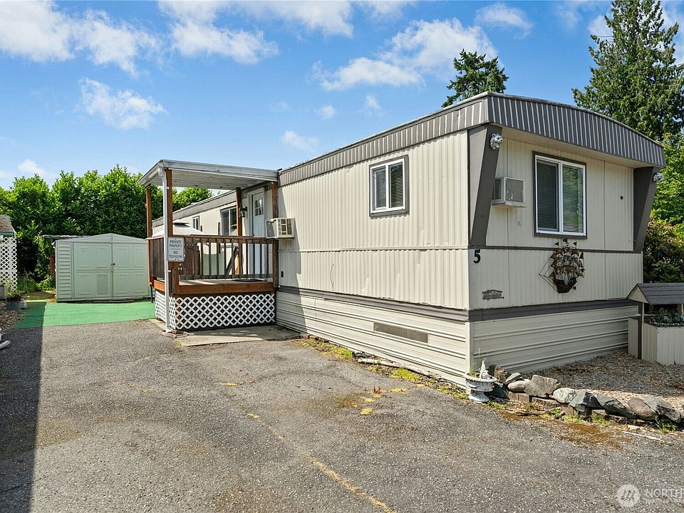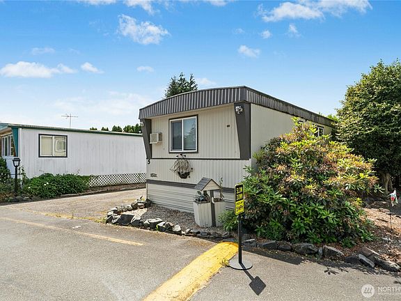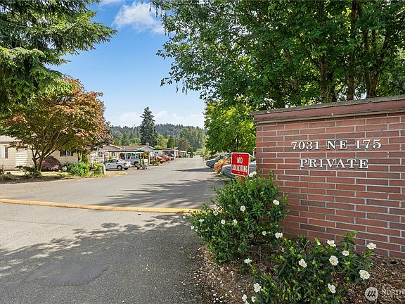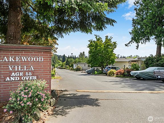Comfortable living at an affordable price! You will love the relaxed atmosphere at the 55+ Lakewood Villa. This home features 2bd w/ 1.25 bath (primary walk-in shower + powder) open concept kitchen and living room, Primary w/ensuite and walk in shower, metal roof, dog run, and plenty of storage! Forced air heating and window unit AC. 2parking spots on space. This home can be enjoyed all four seasons, as you are close to the Burke-Gilman trail and parks, Kenmore's retail, and Bothell's evolving dining and entertainment scene. Plenty of room for your tools in the 10x20 shop, or room for future expansion. Community clubhouse and pool! This home has been thoughtfully upgraded throughout the years, and move-in ready! Low space rent!