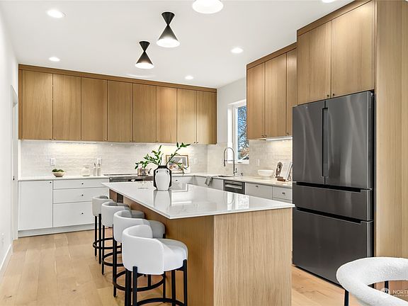 Introducing a stunning new home by Bungalow Builders LLC, where craftsmanship meets modern luxury. This beautiful residence features wide-plank hardwood floors, custom cabinetry, and a gourmet kitchen with a spacious island, top-tier appliances, and a generous pantry. Enjoy energy-efficient living with high-efficiency heating and cooling in all rooms, LED lighting, and hybrid water heating. The primary suite offers a spa-inspired bath with a custom dual shower for ultimate relaxation. Outside, a view deck, private yard, and EV-ready garage provide comfort and convenience. Located just steps from Rosellini’s Bakery and Delancy Pizzeria, this Ballard gem combines elegance with unbeatable convenience.