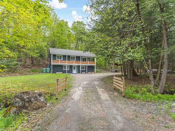 Welcome to this beautifully renovated raised bungalow, offering over 2,200 sq. ft of luxurious living space set on 1.5 acres of private, wooded land. With no visible neighbors, this home perfectly blends seclusion and tranquility, just minutes from the charming town of Minden, the Gull River, and several lakes, beaches and restaurants. The upper level features and open-concept design with stunning oak-engineered hardwood flooring throughout. The spacious living area boasts large windows that flood the space with natural light, while the electric fireplace adds warmth and ambiance. Sliding doors lead to a covered porch, providing the ideal spot for relaxation as you overlook the serene stream and lush forest. This home offers three generous bedrooms on the main level, including a large master suite with a 4-piece semi-ensuite bathroom and convenient main floor laundry. The lower level features and additional bedroom, a 3-piece bathroom and a den; perfect for guests or as a home office. The modern, sleek design includes waterproof vinyl flooring on the lower level, and the home is equipped with a UV & sediment water filter, ensuring clean and safe water throughout. Enjoy year-round comfort with a newly installed propane furnace and central air (2022). Outside, the backyard deck offers beautiful views of the surrounding forest, while the covered carport provides convenient protection for your vehicle. Modern vinyl siding and 2019 asphalt shingles complete the home's exterior, offering both curb appeal and durability. Located near ATV and snowmobile trails, this home is a nature lover's dream, yet still offers easy access to all the amenities of nearby towns. Whether you're looking for a peaceful year-round retreat or weekend getaway, this home has it all. Schedule your showing today and experience the perfect blend of comfort, privacy and natural beauty.